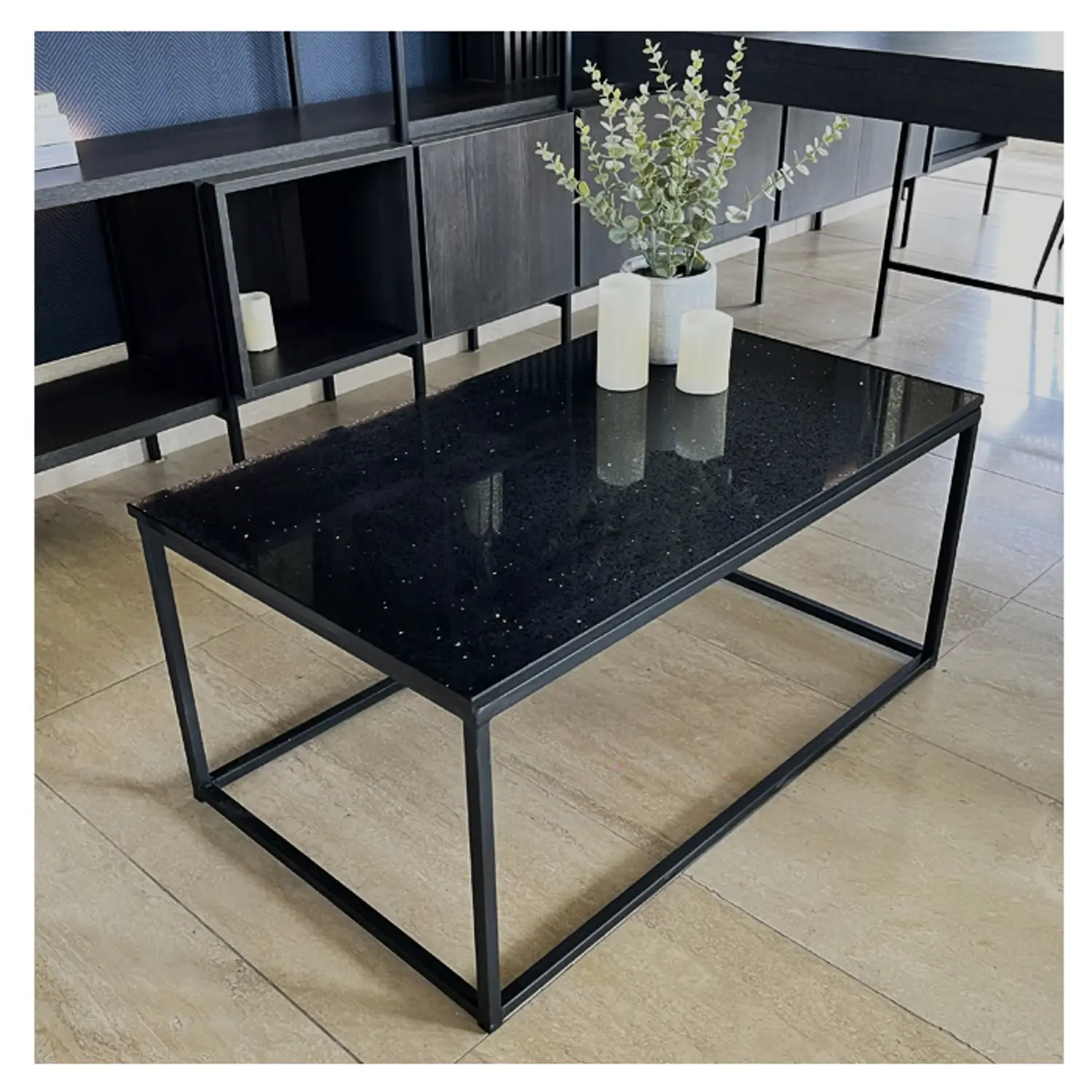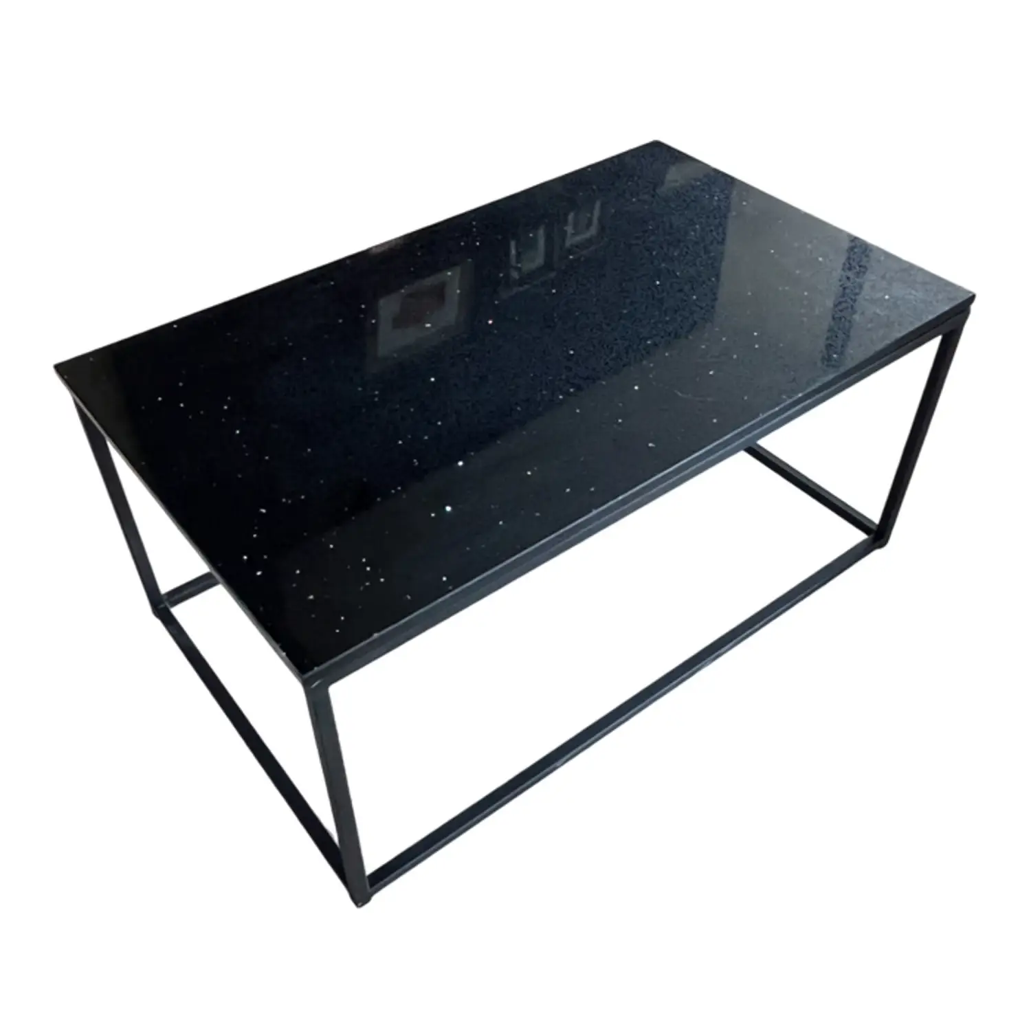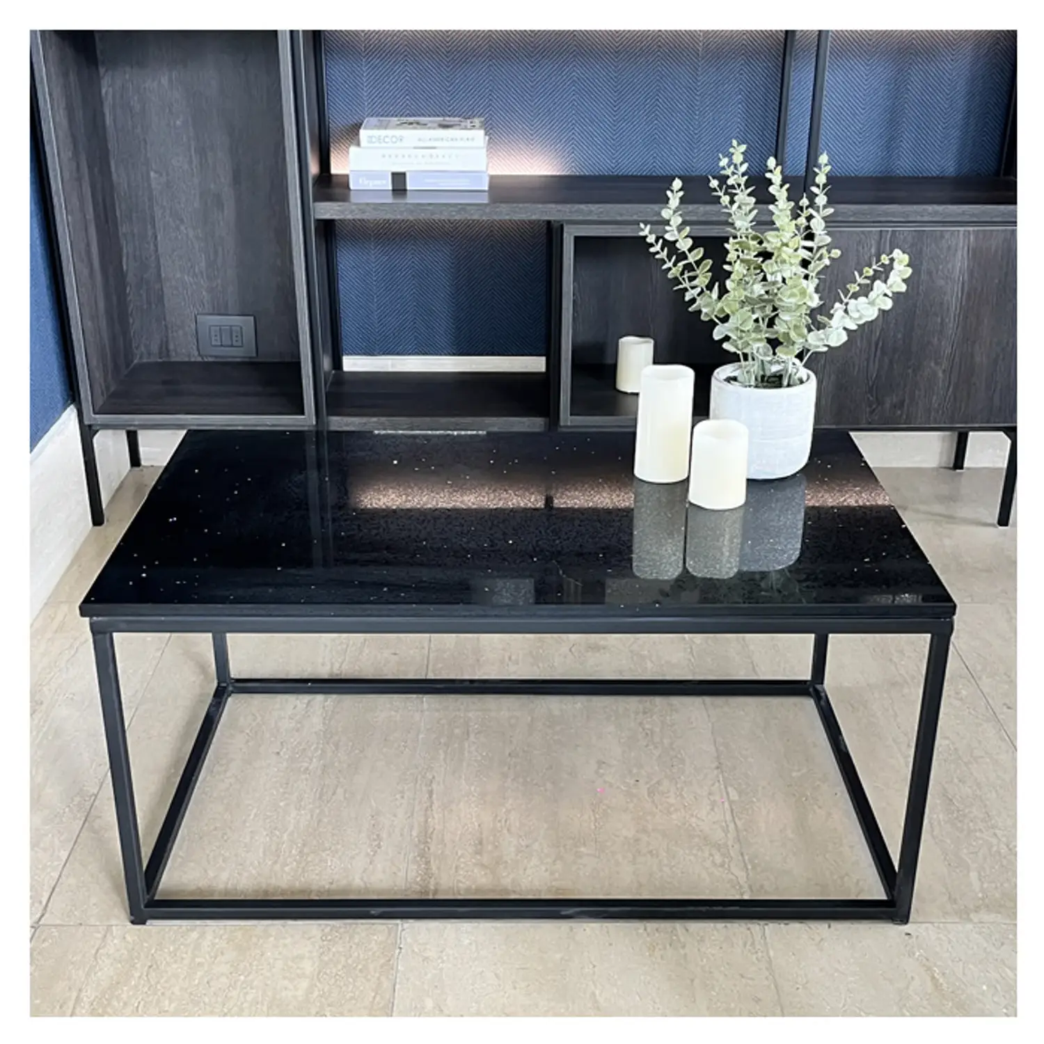 Descubre la perfecta fusión de estilo y resistencia con esta mesa de centro de Cuarzo Negro Galaxy excepcional.